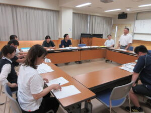 7月7日には、校内研修がありました。生徒の自己調整能力を高めるにはどうすればよいか、そのテーマで、「自己調部」が2つ提案をしました。1つは「自主学習の時間を見つけよう 生活チェックシート」です。1日のタイムスケジュールを記録して、自主学習の時間をどこでとることができるのか、できたのかを見るシートです(後ほど、ご家庭のご協力をお願いするものです)。もう1つは、夏休みの学習計画表です。例年のものと少し異なります。この計画表は、本来は生徒たちに記入させるものですが、今日は先生たちが記入してみました。そしてお互いに発表し合いました.計画を立てるのが得意な生徒、苦手な生徒それぞれに対応できるようになったと思います。学習サイクルを夏休みもしっかりと回せるように、学校も工夫していきます。家庭、地域のご協力も引き続きよろしくお願いいたします。