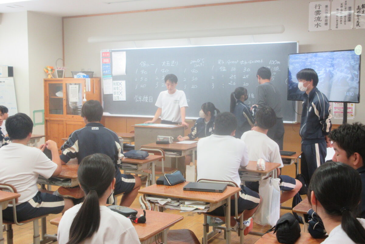 10月6日の5校時には、体育祭結団式と、選手決めを行いました。