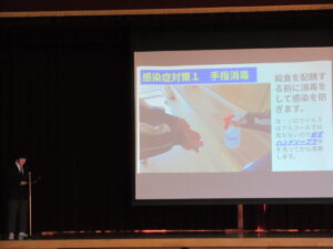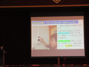 2月19日には、生徒朝会で保健委員会の発表がありました。感染症対策や清潔にしておくためのポイントなど、この時期にあった内容でした。写真が多く使われていて、内容もとてもわかりやすかったです。この発表の内容を受けて、生活をさらによくしていってほしいです。保健委員会のみなさん、素晴らしい発表をありがとうございました。