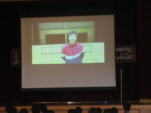 次に,思い出の映像として、かつて教わった先生たちの動画メッセージが次々と流れました。懐かしい先生の顔を見て3年生たちも喜んでいました。