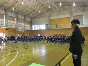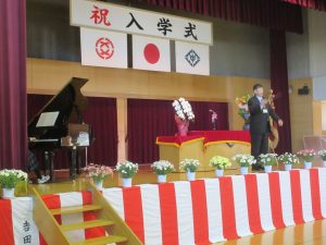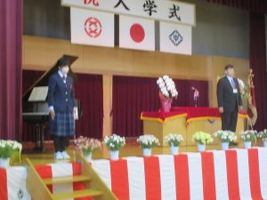 続いて、国歌、校歌斉唱でした。本校の校歌はレコードにもなっている全国にも誇れる校歌です。新入生にも早く覚えてほしいです。