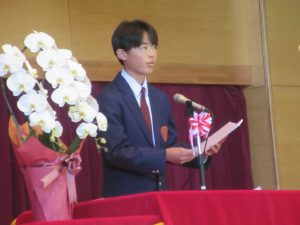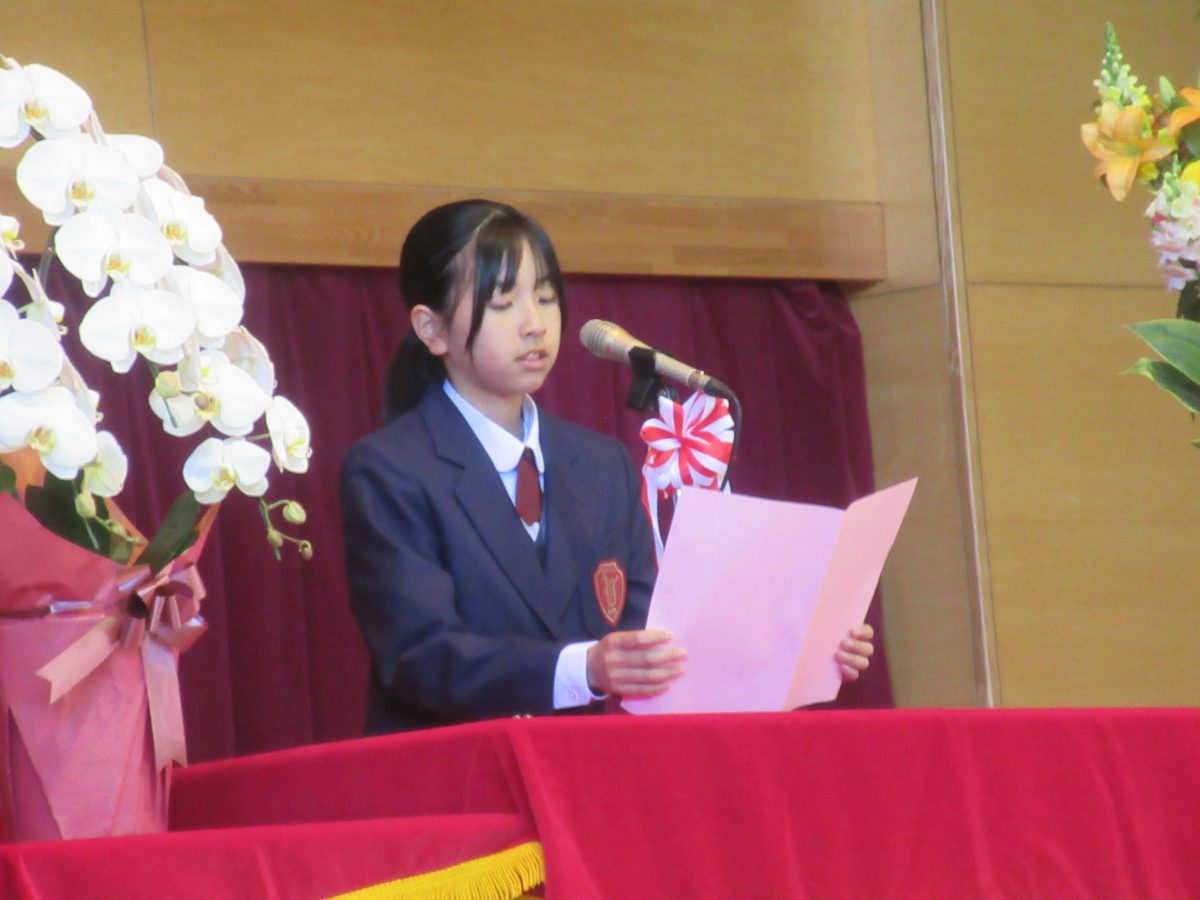 続いて、生徒会長の新井さんからの歓迎の言葉、そして新入生代表の近藤さんから代表の言葉がありました。