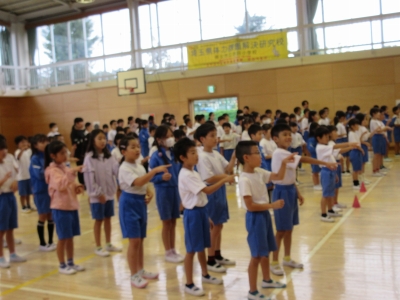 全校合唱は、今月の歌「ありがとうの花」を手話をつけて歌いました。心を込めて歌うことができました。